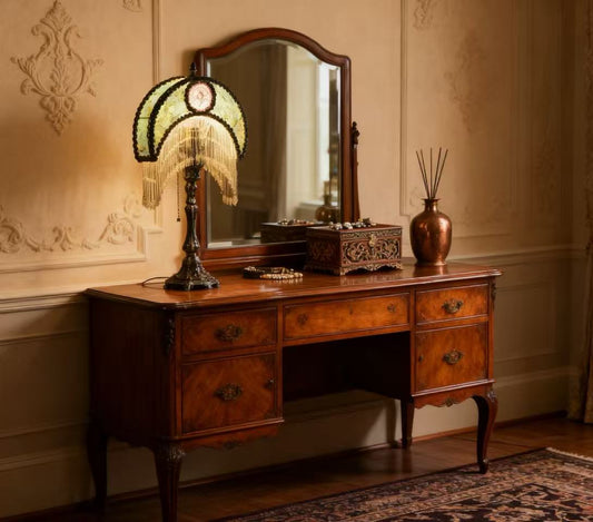 French Vintage Green Beaded Tassel Table Lamp
