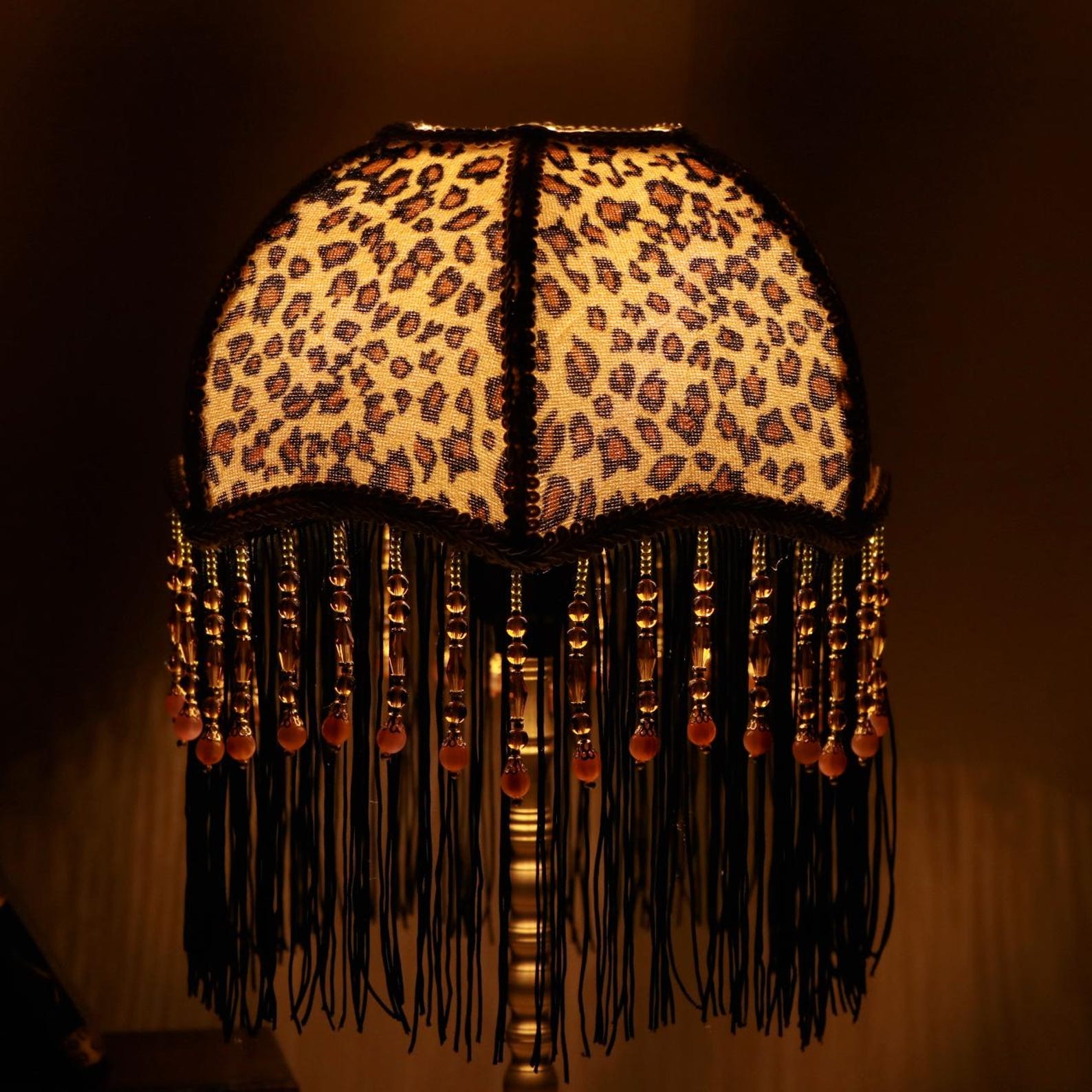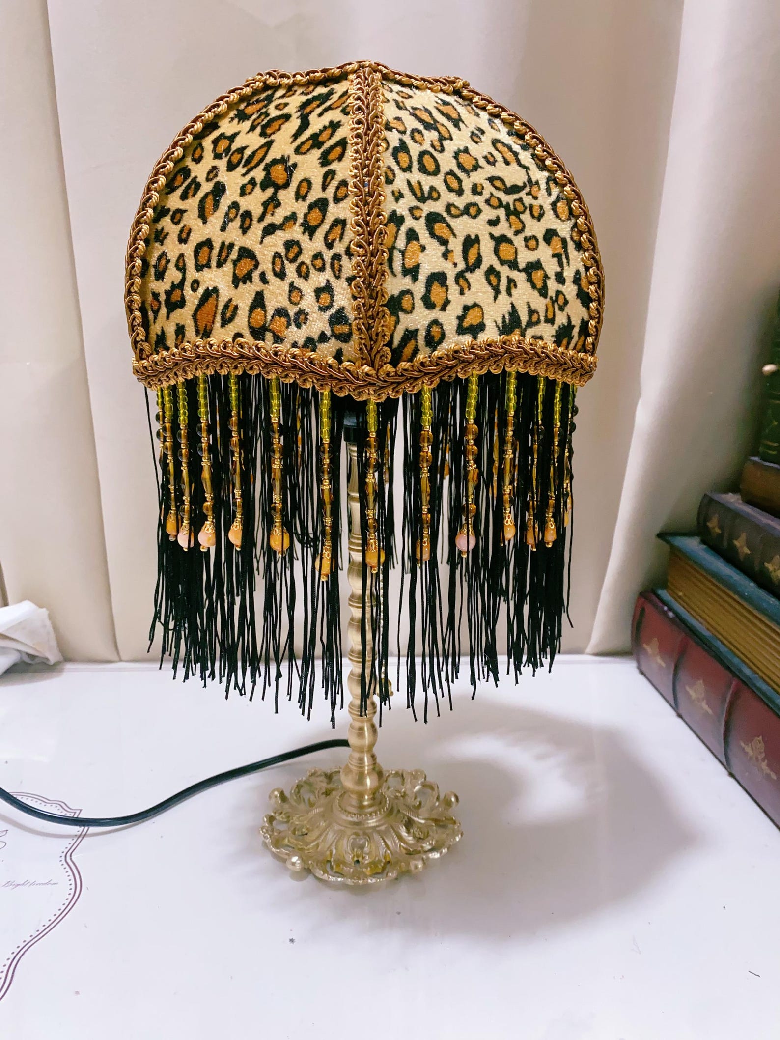 ヴィンテージ ヒョウ柄 テーブルランプ/手作り パーソナライズ タッセル テーブルランプ/寝室用小型ベッドサイド テーブルランプ/新築祝いギフトランプ 電源ソケット付きジッパー テーブルランプ