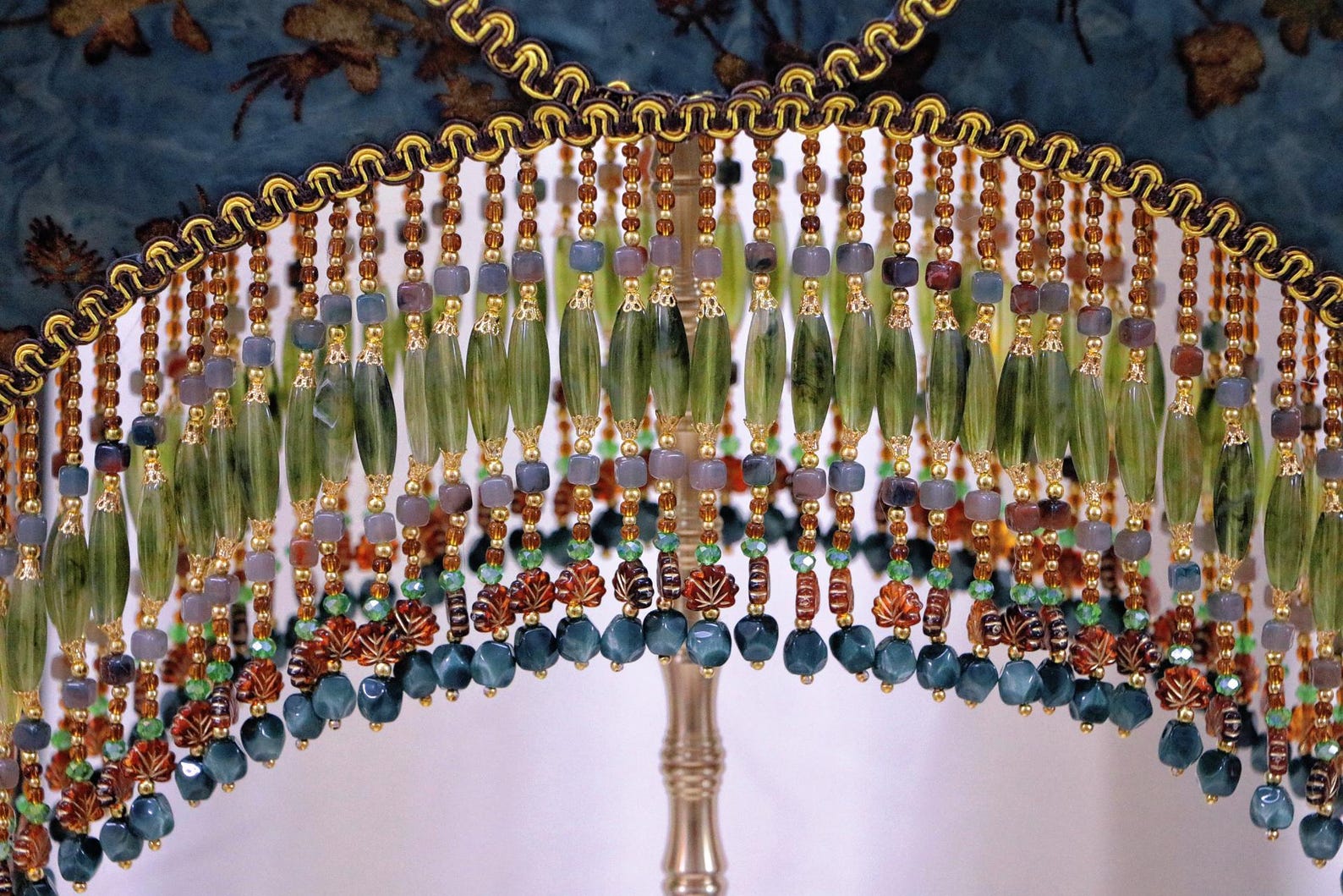 Gradient glass bead tassels: Hand-strung glass beads are layered in a captivating gradient of emerald green, amber, and gold. When lit, they project a dazzling kaleidoscope pattern onto the wall, presenting a dazzling and exquisite appearance.