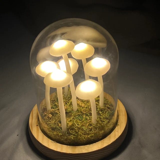 If you bought the material kit, let the mushroom lamp dry for two nights after it is done, and then cover it with a glass cover.