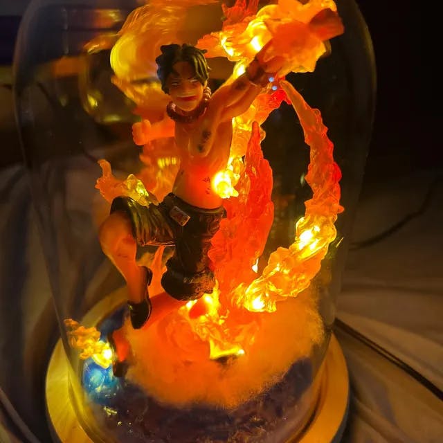 Under the warm light, the handmade Sanji and Ace night lights gradually light up